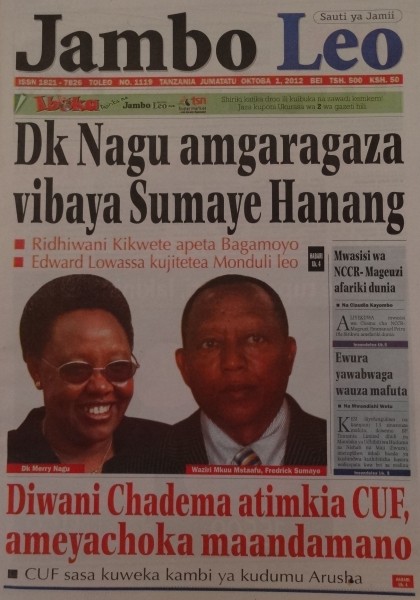 » HEADLINES ZA MAGAZETI YA TAREHE 1/ 10 /2012 HAYA HAPAAAAAAAAAAAAAA