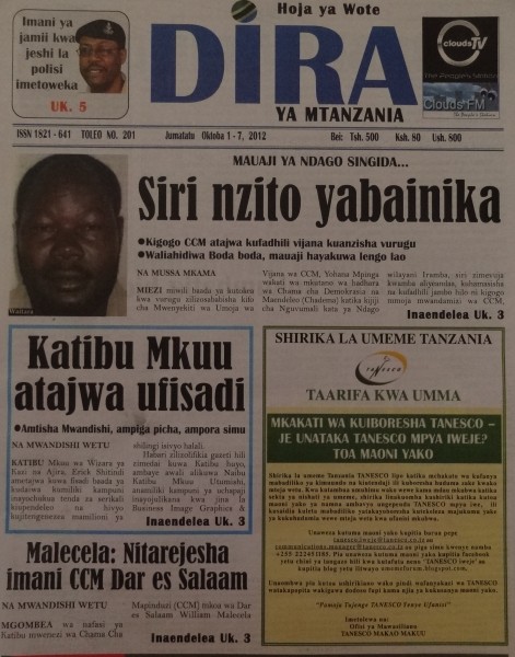 HEADLINES ZA MAGAZETI YA TAREHE 1/ 10 /2012 HAYA HAPAAAAAAAAAAAAAA
